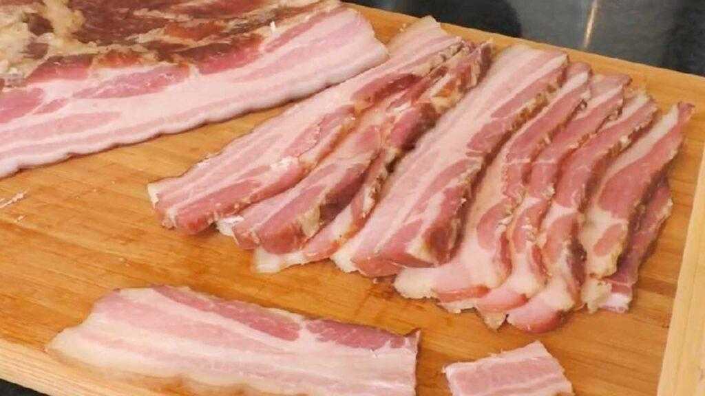 - Соленую грудинку можно хранить в холодном погребе или в холодильнике, последний вариант предпочтителен. Если продукт на 1–2 часа убрать в морозильную камеру, нарезать его тонкими ломтиками будет гораздо проще.
