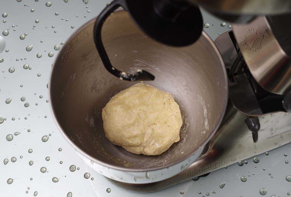 Скатайте тесто в шар, оберните плёнкой, поместите в холодильник.