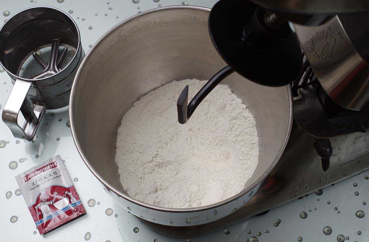 - Мука – 700 — 800 г (в оригинале 700г, но мне понадобилось более 800, чтобы тесто стало не липким);