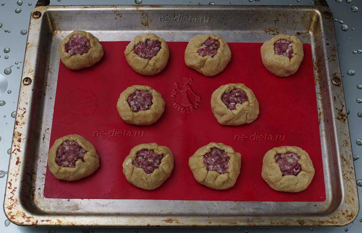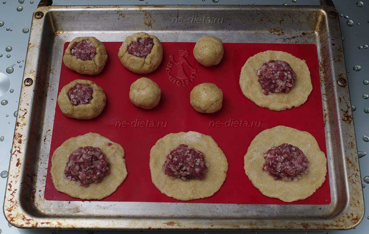 Готовые изделия должны по виду напоминать ватрушки с мясной начинкой внутри.