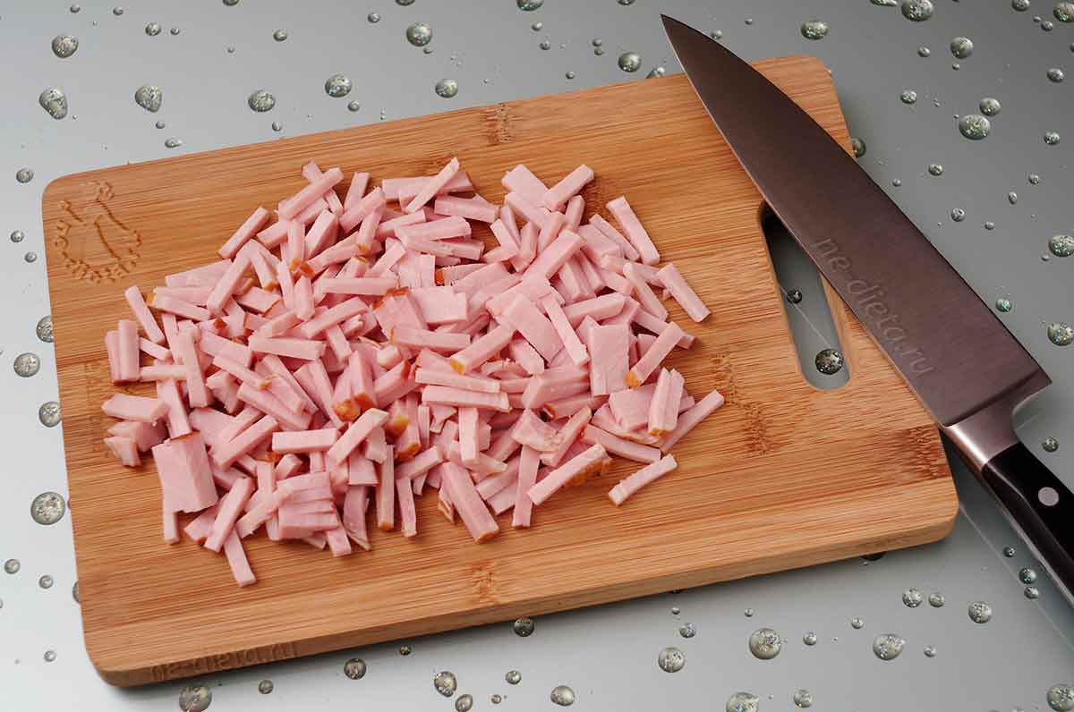 А мы тем временем займемся луком. Нарежем его достаточно мелко.