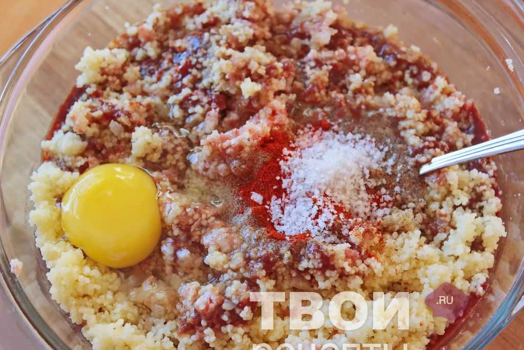 Манка в рецептуре заменяет муку, позволяет связывать все компоненты. Единственным требованием станет выдерживание теста не менее 25 минут в покое после добавления крупы. Это делается для того, чтобы манка «заработала», сделала готовые битки воздушнее.