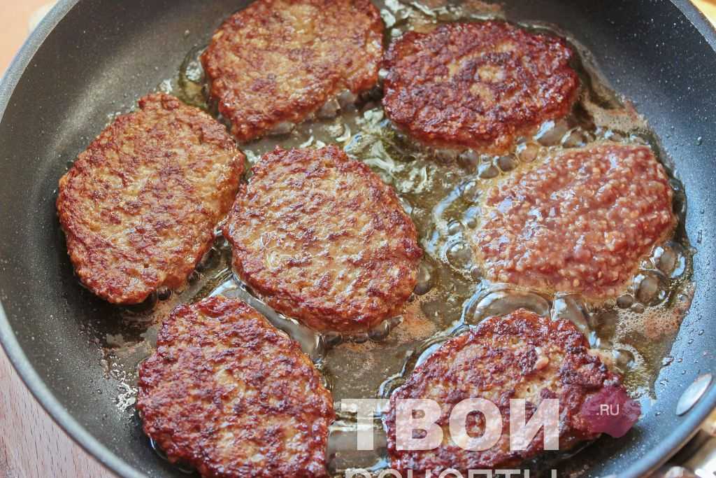 - Обжаривайте котлетки с обеих сторон до золотистого цвета.