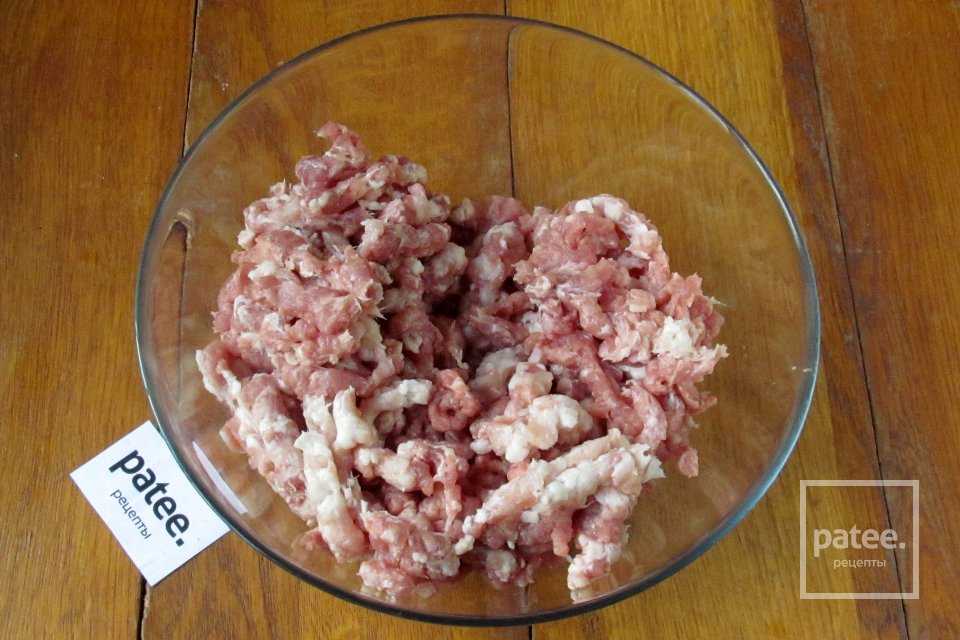 Свинину пропускаем через мясорубку.