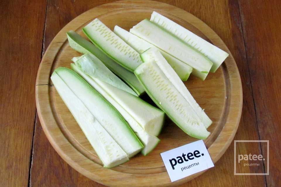 Молодой кабачок моем, обрезаем края и нарезаем кусочками удобного для пропускания через мясорубк размера.