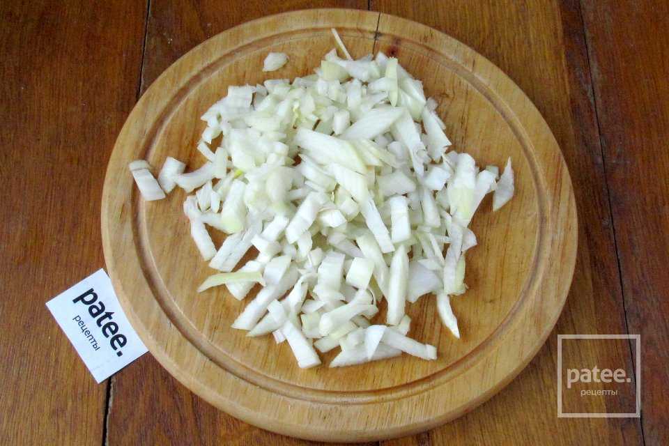 Репчатый лук чистим и нарезаем маленькими кубиками.