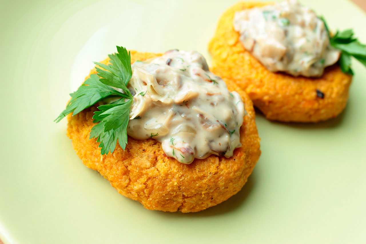 - Из «фарша» формируются небольшие заготовки, которые обваливаются в сухарной крошке и выкладываются на специальную решетку, смазанную маслом.