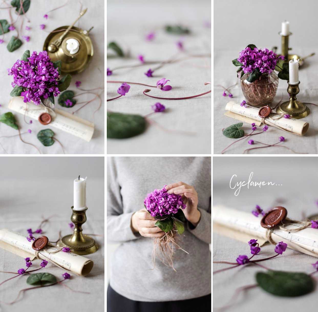 Фото лесных цикламенов, а внизу страницы Краткий рецепт Печенья с кусочками шоколада, который можно распечатать.