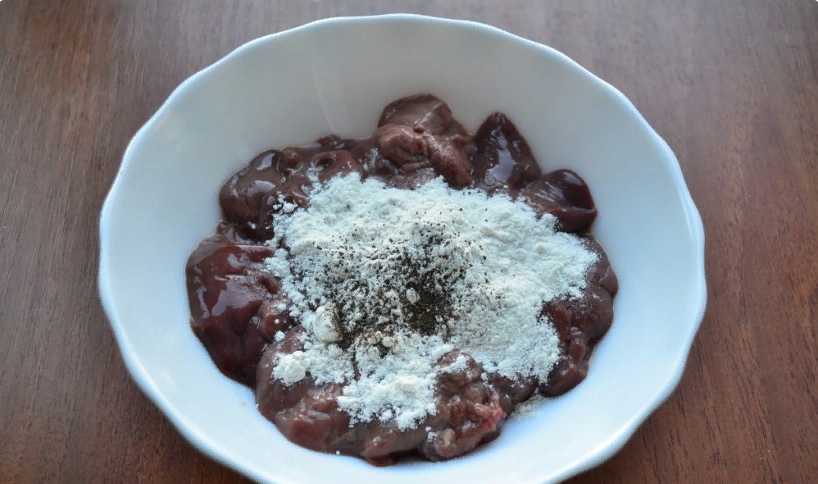 Начну с рецепта, который требует минимум времени и ингредиентов, только мука, соль, немного масла для обжарки. Приготовив блюдо правильно, вы получите мягкие, сочные кусочки печёнки, которые можно подать с картошкой, рисом, гречкой, с жареной капустой или овощным рагу