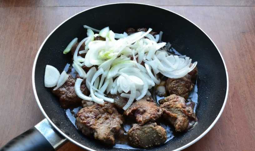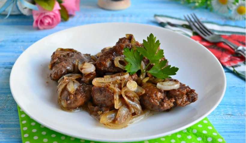 Жареная куриная печень с луком и мёдом