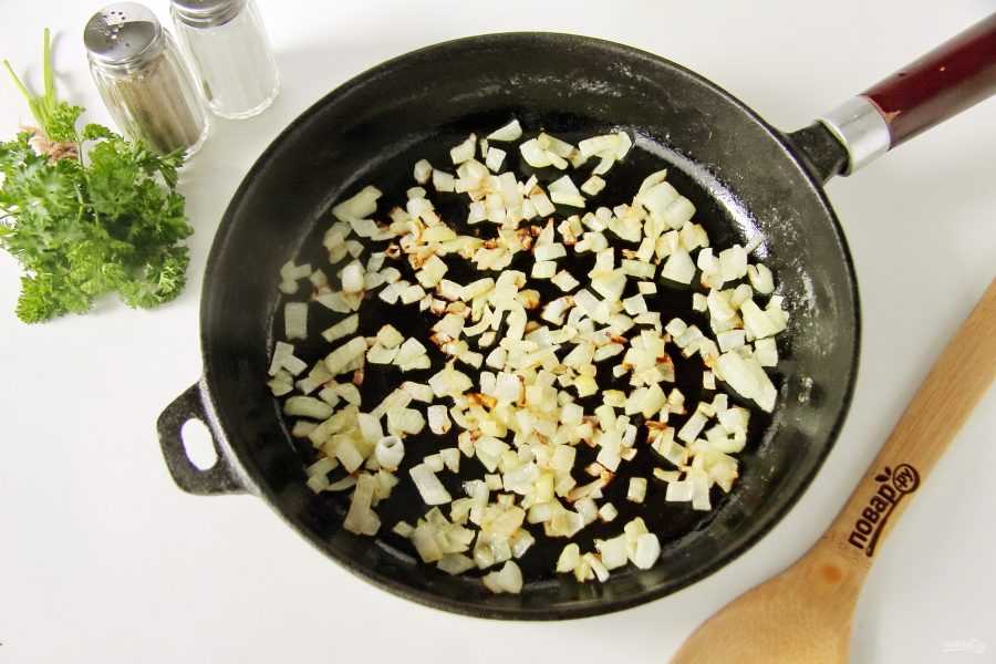 Одну луковицу нарежьте кубиками и обжарьте на сливочном масле до мягкости.