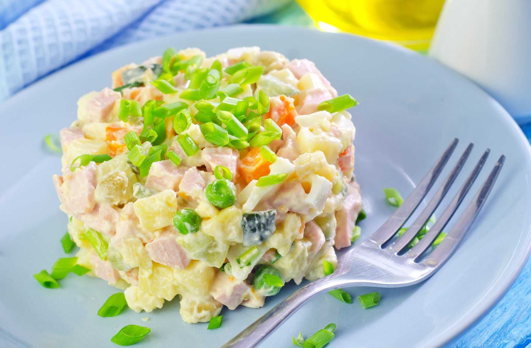 Салат оливье с колбасой и свежими огурцами