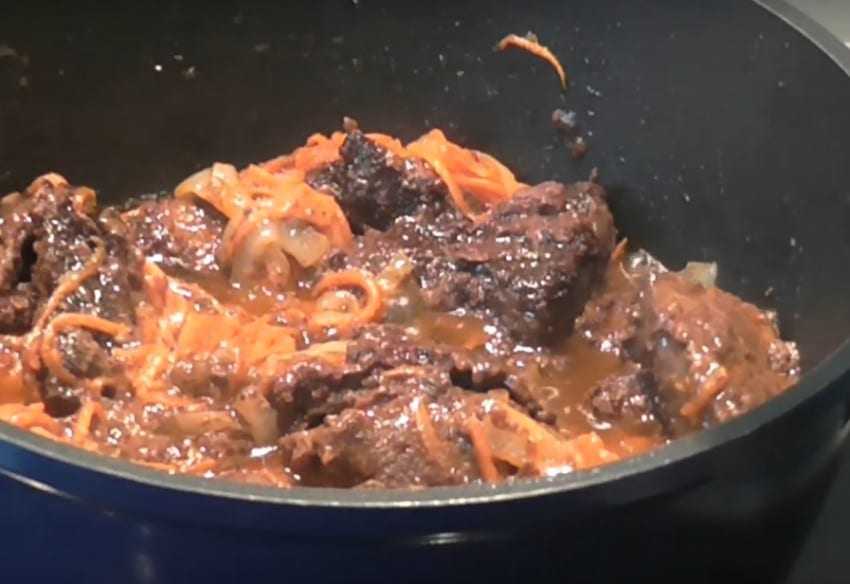- Сбавьте огонь до минимума. Потушите блюдо до мягкости.