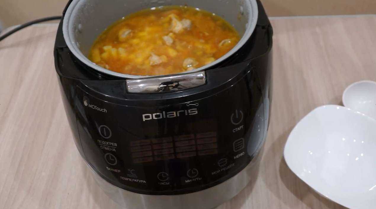 После этого ставим мультиварку на режим суп и выставляем время на девяносто минут. После готовности можно отключить режим подогрев и оставить крышку закрытой на некоторое время.