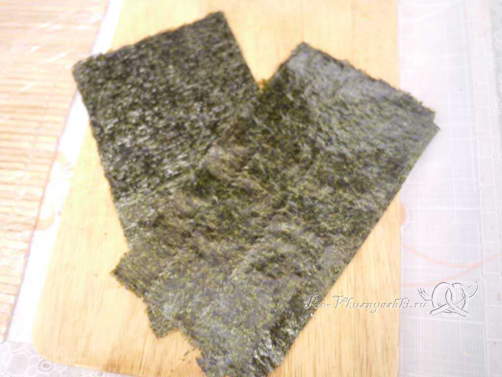 Делать это нужно аккуратно, чтобы не порвать лист нори.
