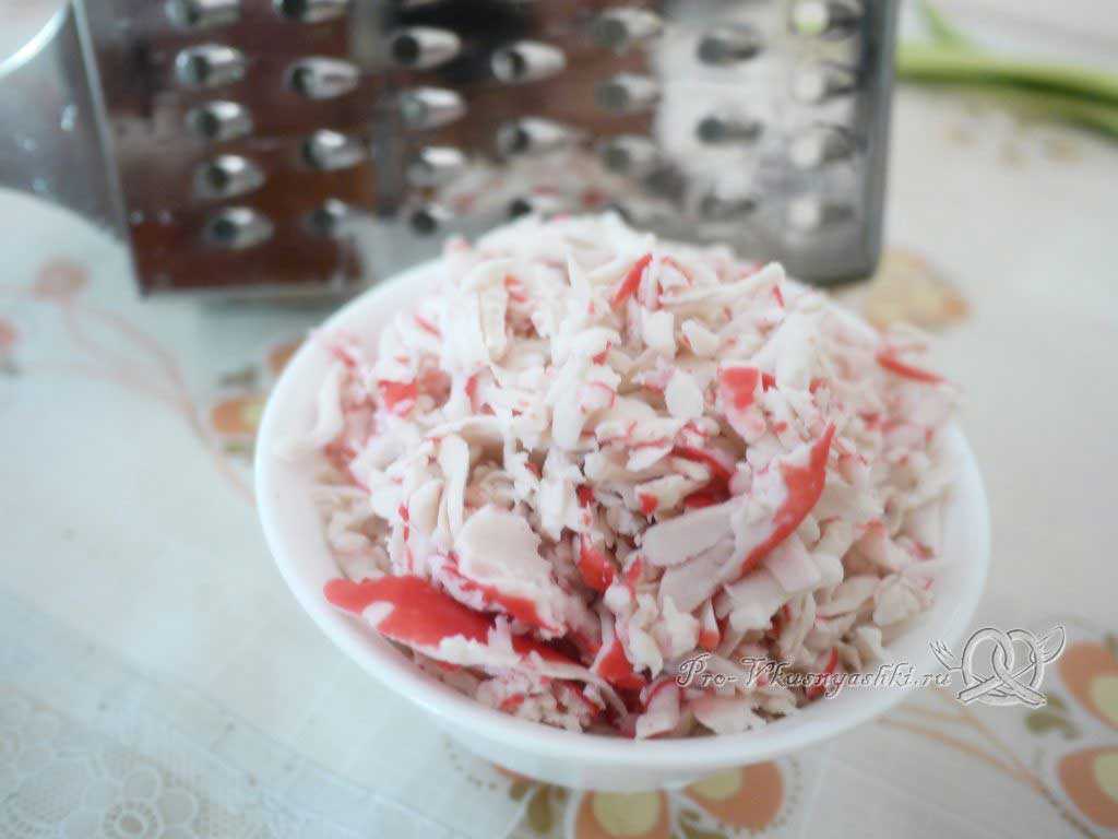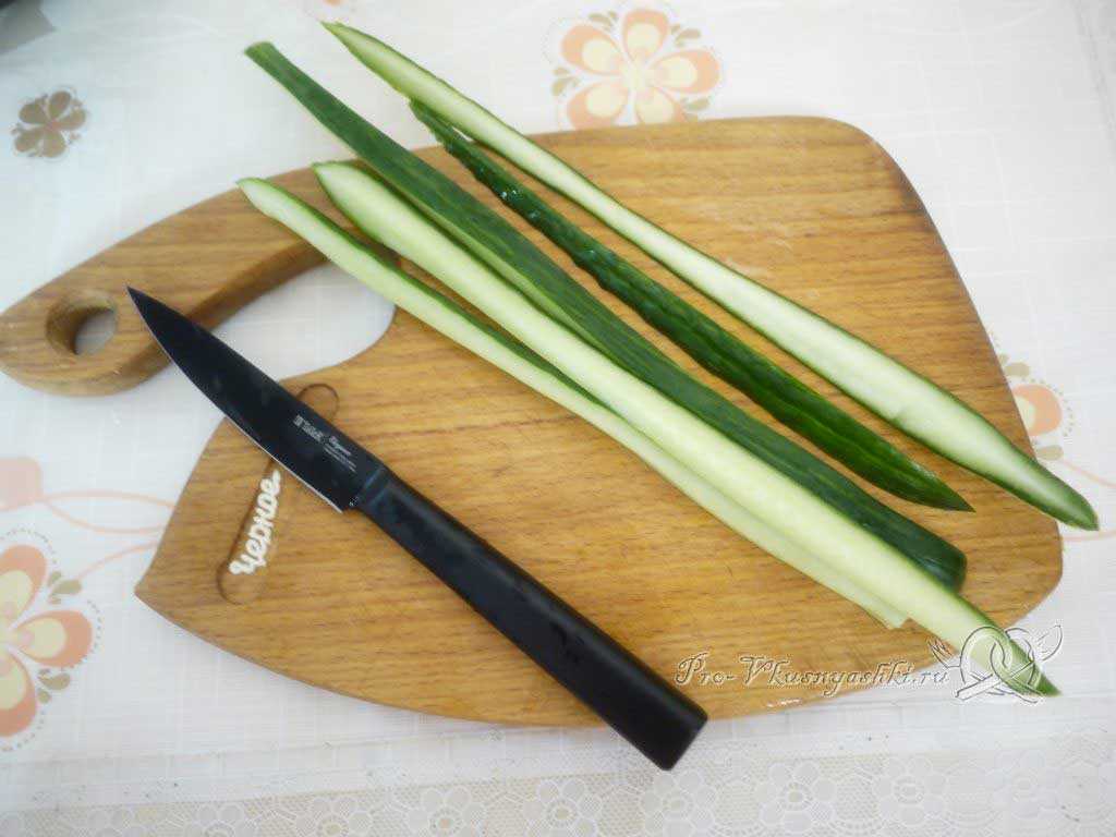 Авокадо и креветки или крабовое мясо нужно нарезать соломкой.