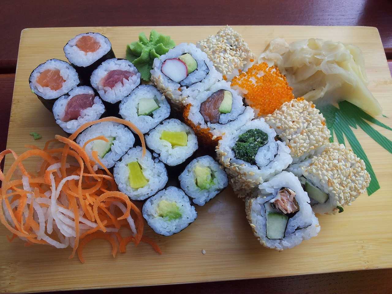 В качестве овощей в них используется авокадо или огурец. Традиционно суши подаются с васаби, имбирем или соевым соусом.