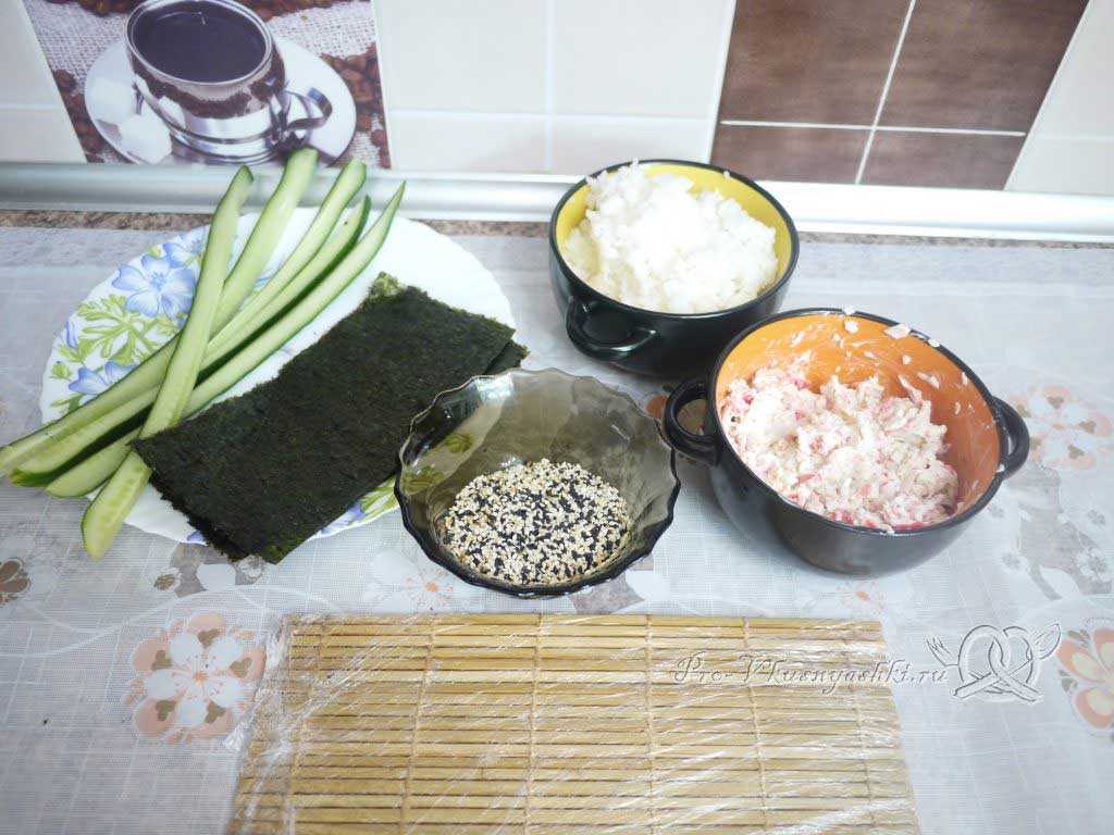 Все ингредиенты подготавливают заранее, чтобы в процессе приготовления роллов они были под рукой в нужном количестве.