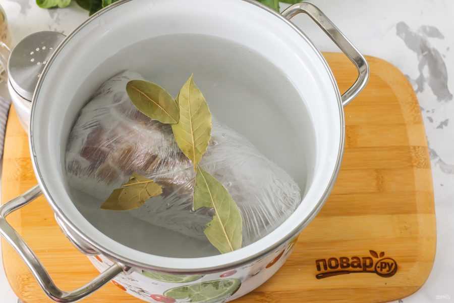 Рулет из рульки вареный в пленке (или пакете для запекания)