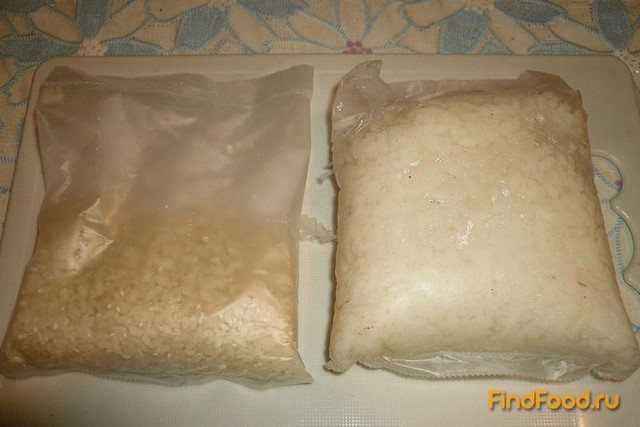Рис лучше выбрать круглый краснодарский, если такого в наличии нет, то берем любой. Отвариваем рис до полной готовности, проще всего использовать рис в пакетиках для варки (после того, как рис в пакетике отварен, также даем ему обтечь). Рис остужаем.