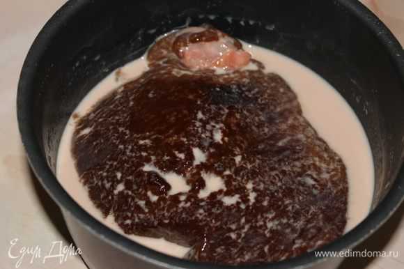 - Складываем обжаренные сальники в кастрюлю и заливаем соусом, что готовится из сока, образовавшегося от обжарки.