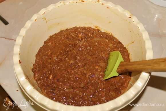 - Смешиваем все вместе, добавляя специи с солью. Теперь у нас готов фарш. Приступаем к дальнейшим шагам.