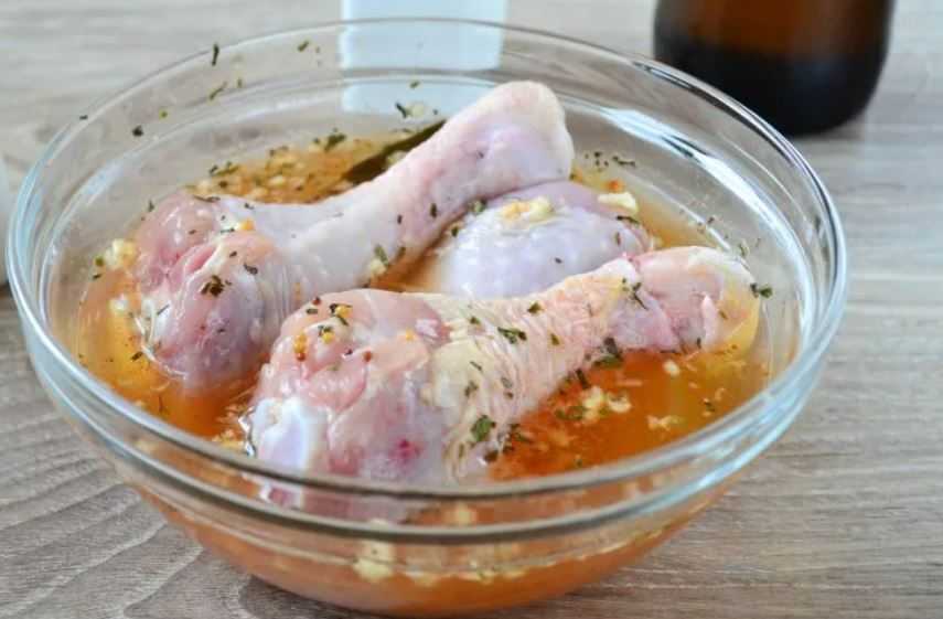 Курятину можно замариновать в смеси светлого пива, репчатого лука и специй