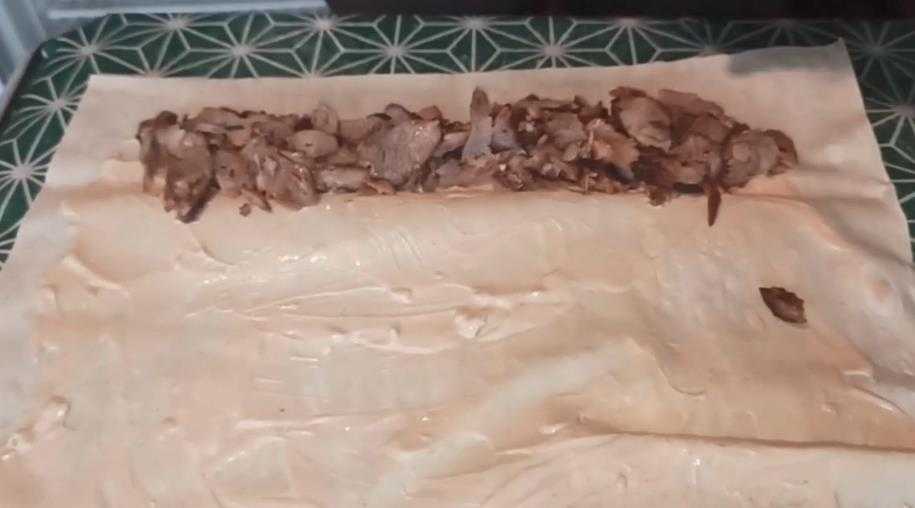 15. После чего аккуратно заворачиваем шаурму в свободную часть лаваша.