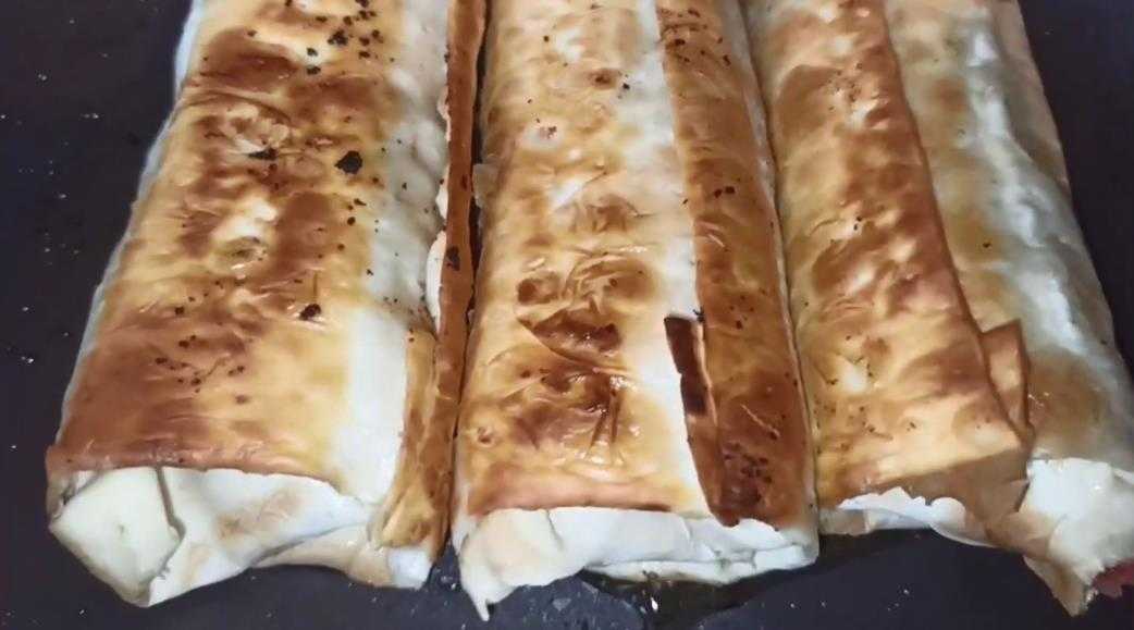 - Обжариваем лаваш с начинкой на сковороде без масла.