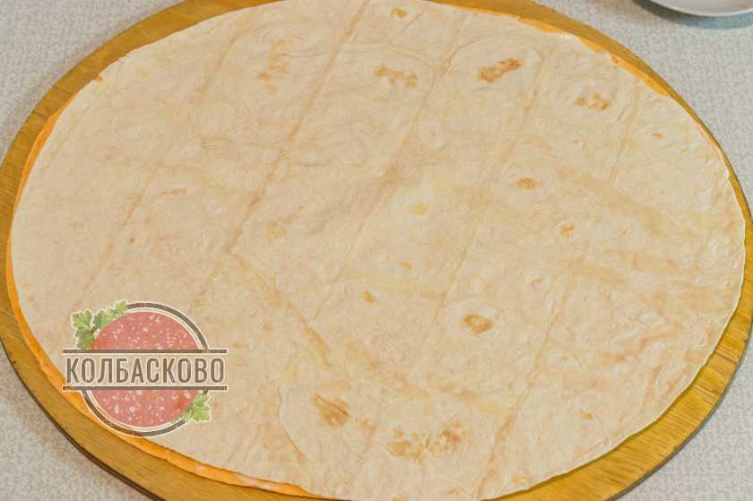 - тонкий лаваш — 4 штуки диаметром 36 см;