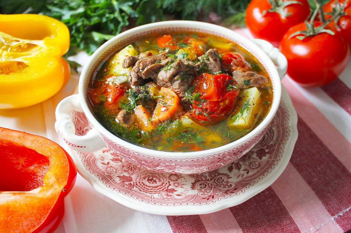 - Овощная основа – в суп кладут любые овощи, которые имеются под рукой: помидоры, картофель, баклажаны, морковь, болгарский перец, репчатый лук. Овощи следует нарезать максимально крупно, чтобы в процессе варки они не потеряли свою форму и не превратились в пюре. Овощи закладываются в казан за 1 час до готовности мяса.