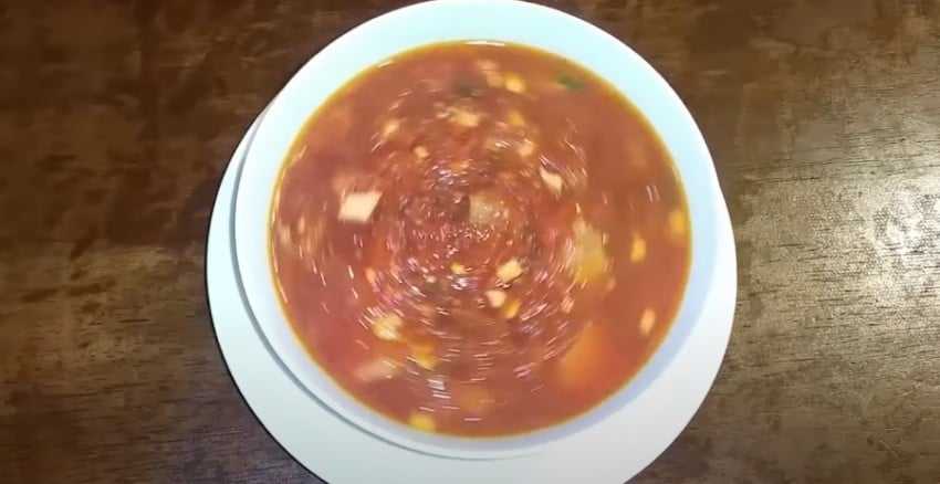 Если все хорошо, то отправляйте кастрюлю в холодильник для охлаждения. Через 3 часа суп охладится и станет невероятно вкусен. Подавать его можно просто так, или заранее отварите яйца вкрутую, разрежьте их на две половинки и выложите в тарелку.