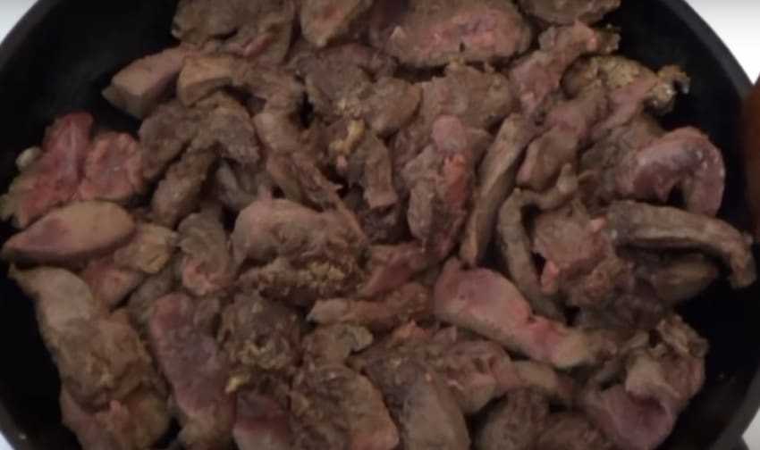 Основной компонент этого блюда получается одинаково мягким и насыщенным – хоть куриный, хоть говяжий. Правда, птичий субпродукт тушить надо чуть меньше по времени.