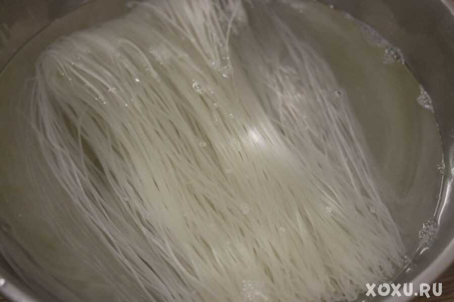 - Рисовую лапшу приготовить, согласно инструкции на упаковке (смотрите рецепт приготовления выше).