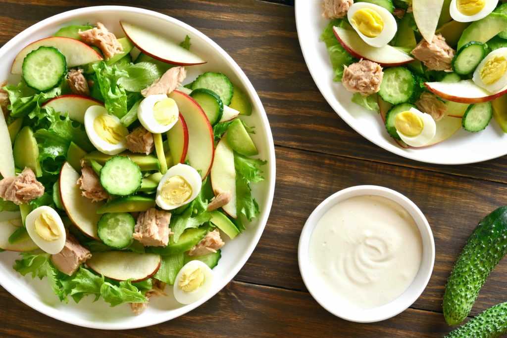 Салат с консервированным тунцом, яйцом и огурцом без майонеза