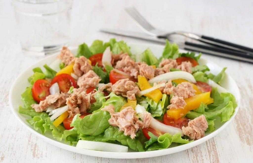 В этом салате с тунцом, филе должно быть не в масле или под томатным соусом, а в собственном соку. Так, максимально сохранен его оригинальный вкус.