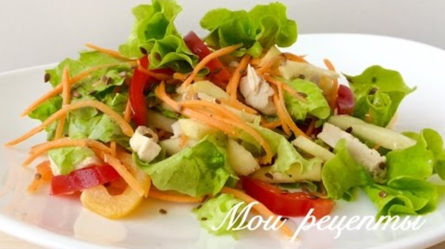 Яблоко дает летнюю свежесть этому блюду. Оно получается легким и почти диетическим, так как в нем нет майонеза. И при этом он, ну очень вкусный. Рецепт с фото и пошаговыми пояснениями.