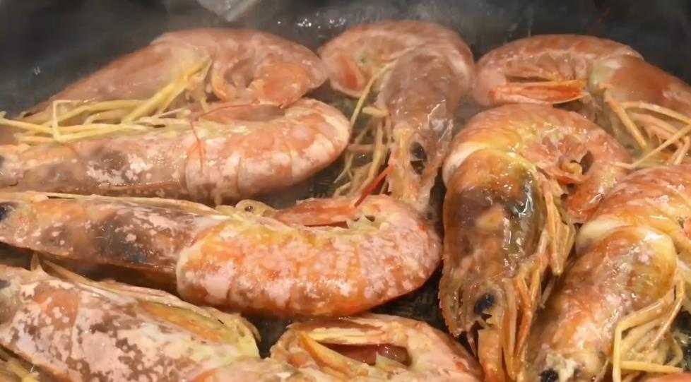 - Разогреваем сковороду, добавляем растительное масло и выкладываем промаринованные креветки. Обжариваем их в течение 6-8 минут, периодически помешивая. Остужаем.
