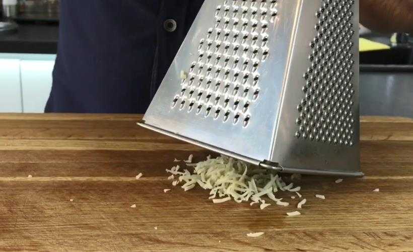 Сыр трем на терке через его крупную решетку.