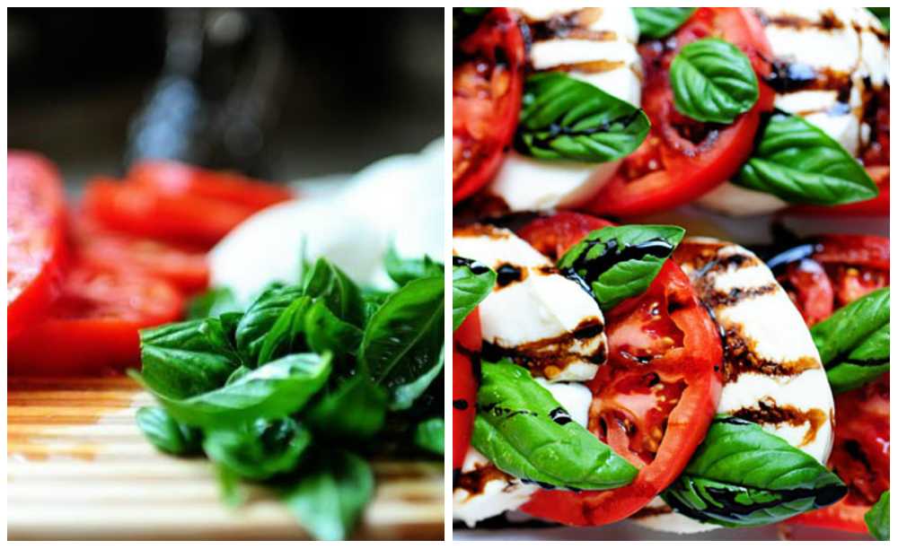 Яркий и важный ингредиент Капрезе — свежий базилик. Вы знаете, что бывают разные его сорта: фиолетовый, зеленый, коричневый. Они все различаются на вкус. Но для салата Капрезе предпочтите молодой зеленый. Он имеет более нежный вкус, слегка отдает мятой и анисом. В то время как фиолетовый например более пряный и резкий, он больше подойдет как приправа к мясным блюдам. Нежному салату Капрезе нежный зелененький, особенно молодые верхние листочки, подойдет просто идеально.