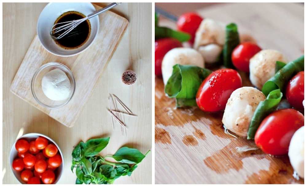 Приготовление легкого итальянского салата на шпажках с соусом Песто: