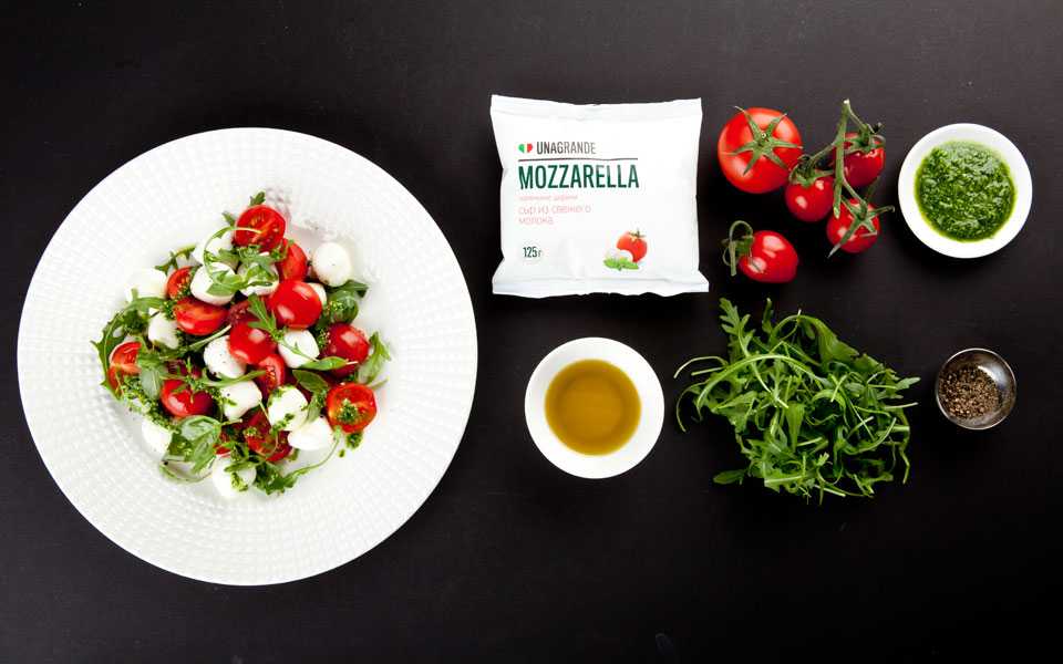 Простое в приготовлении блюдо, дополненное вкусным и необычным соусом. Вариаций приготовления данного салата очень много. Один из самых популярных рецептов – «Капрезе» с соусом «Песто». Рецепты данного соуса приводятся ниже.