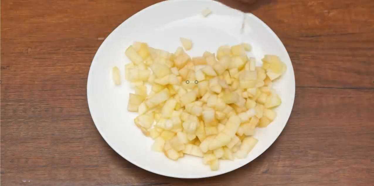 - Ломтиками нарезать яблоко и сельдерей, полив их ложкой заправки.