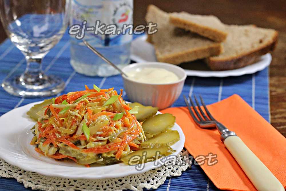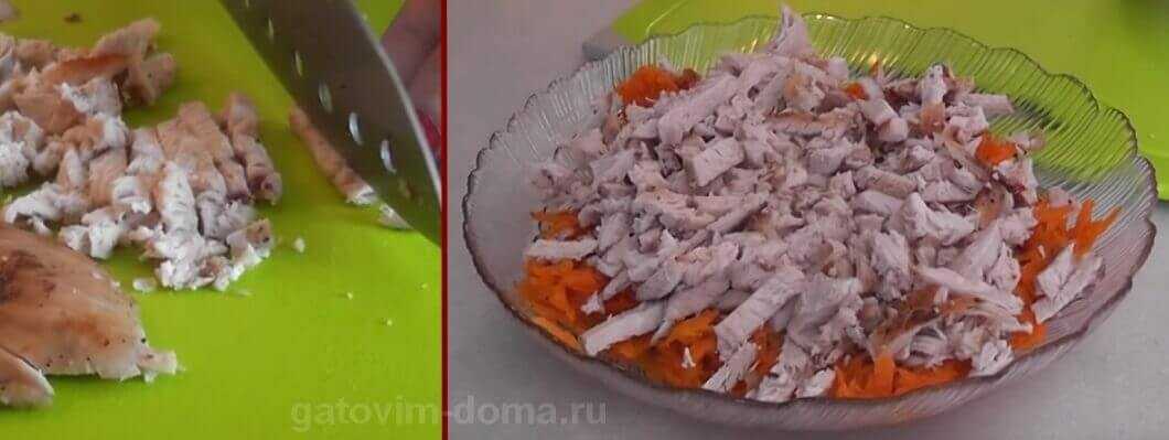 Рецепт салата с курицей, солёными огурцами и морковью по-корейски