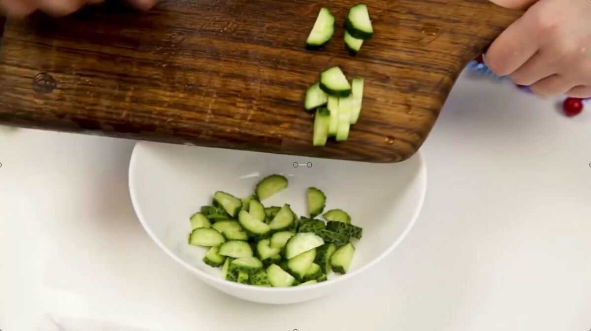- Огурец нашинкуйте соломкой.