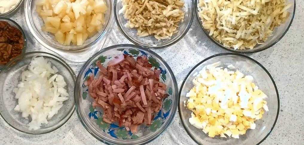 Рецепт 4: салат слоеный с ананасами и с грецкими орехами