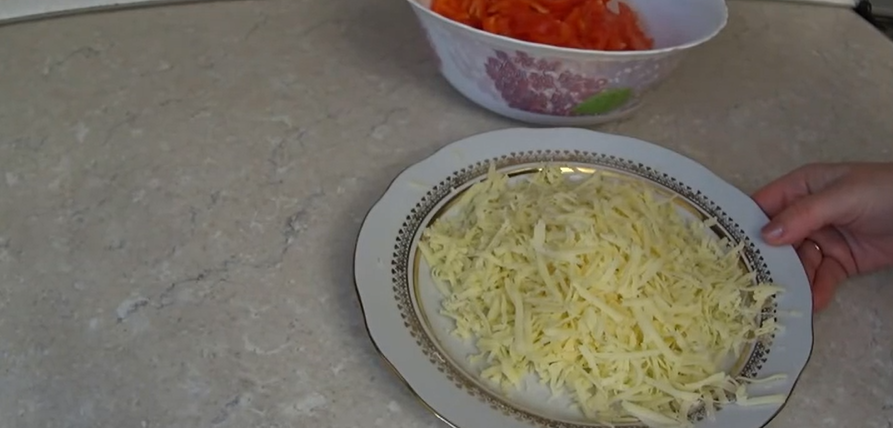 4. Осталось на верх салата натереть сыр на крупной терке.