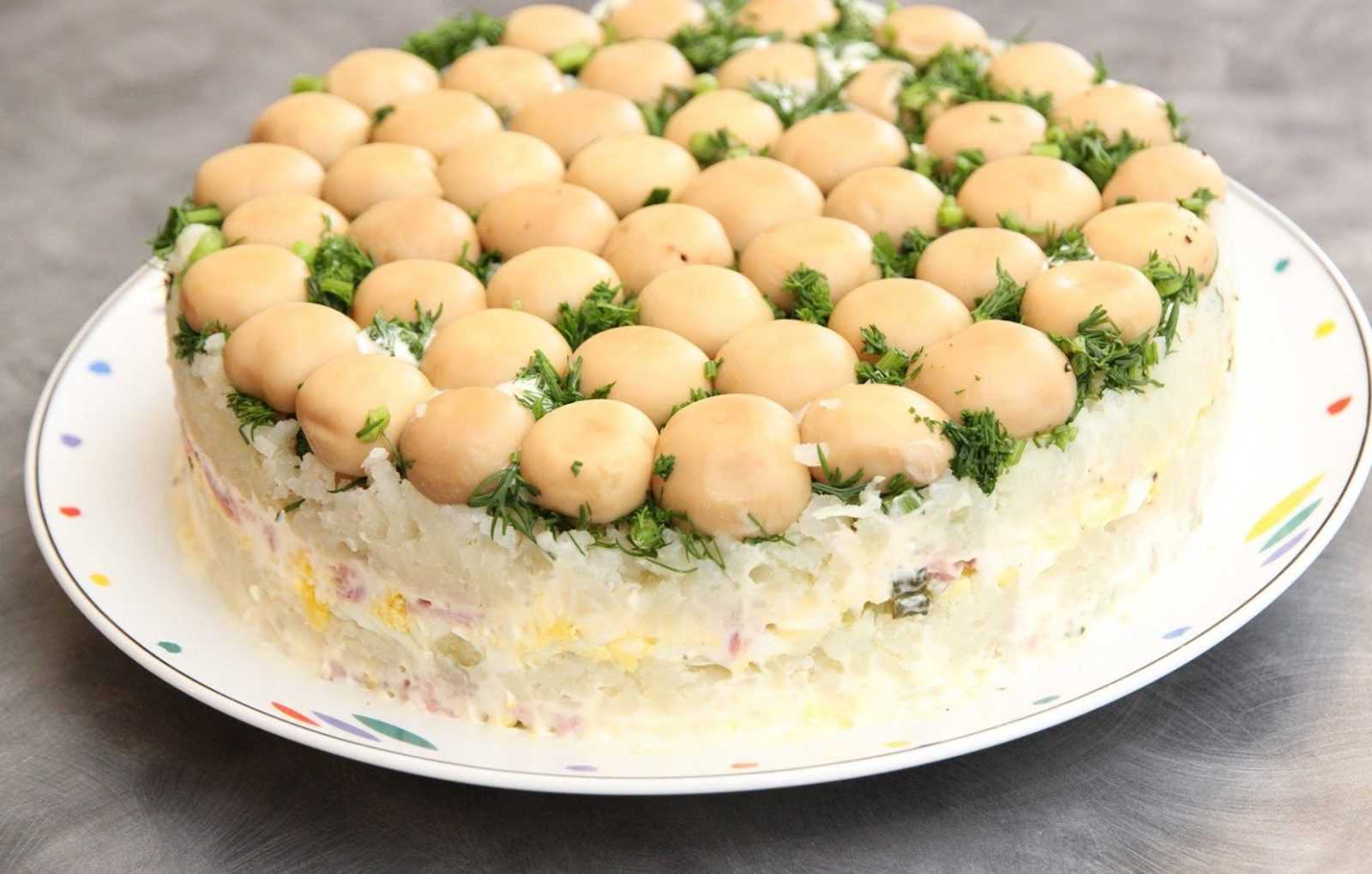 Салат с шампиньонами и ветчиной, и фасолью