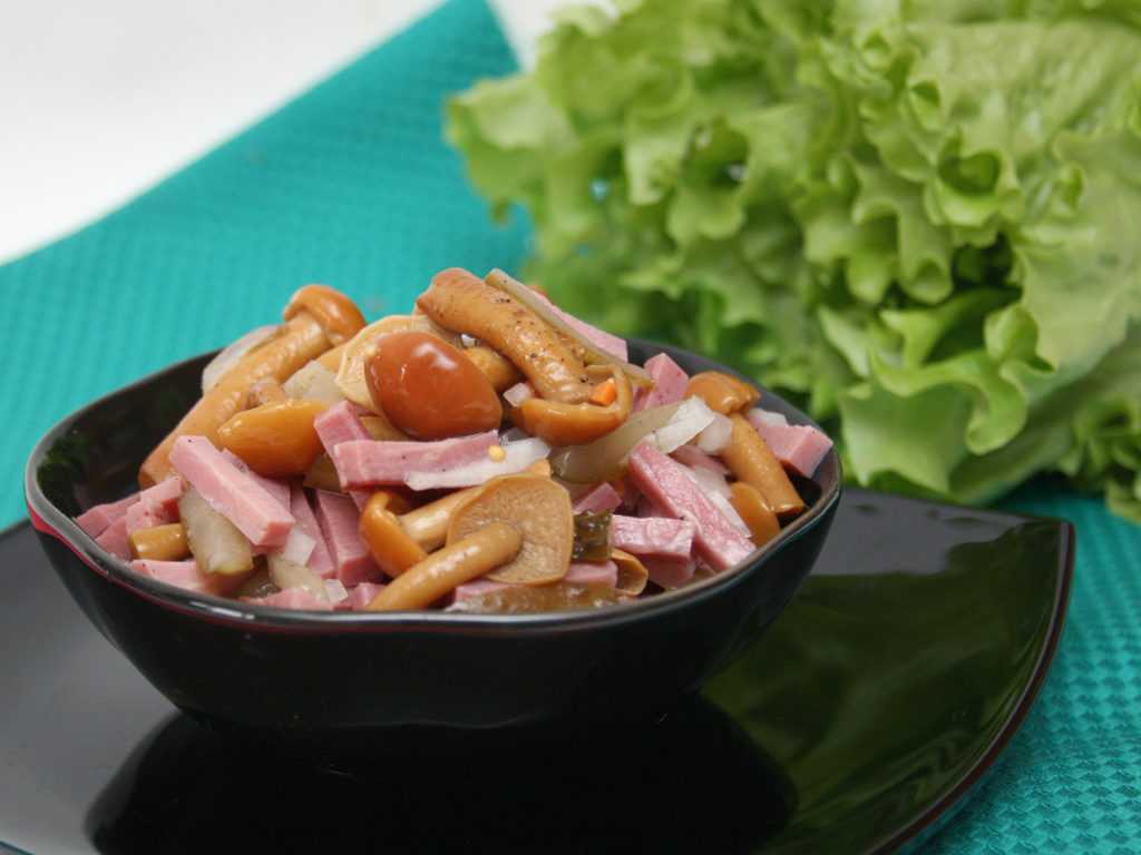 Экзотический салат ветчиной и опятами