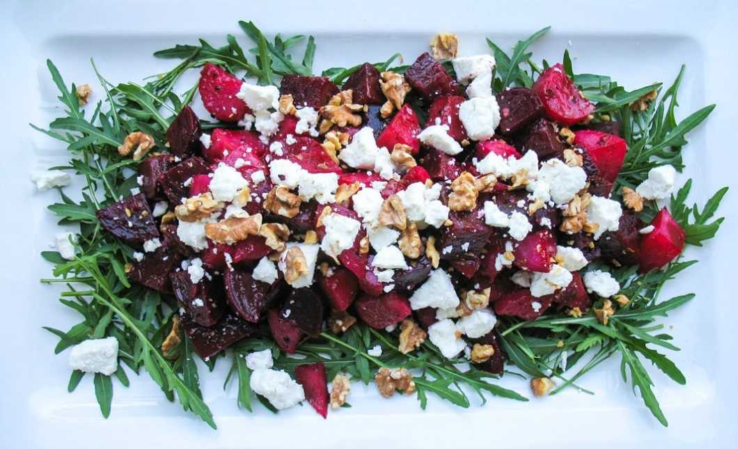 Зимний салат из свеклы и граната с карамелизованными орехами